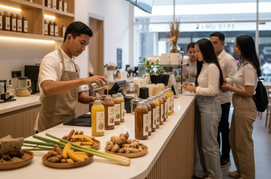 • Herbal Smoothies: Kombinasi jamu tradisional dengan buah segar yang menarik perhatian anak muda.